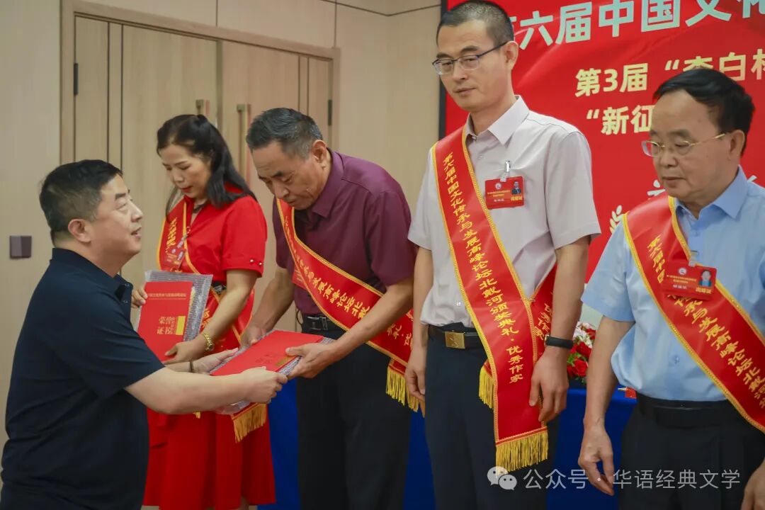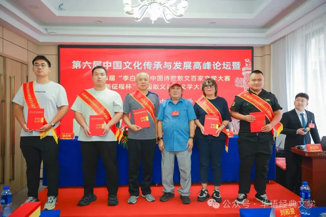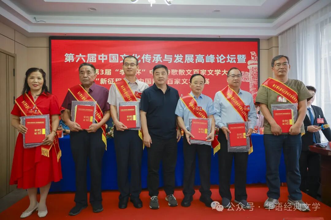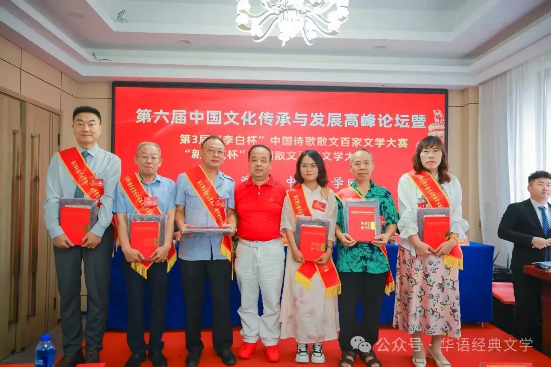中国文学网讯:燕赵大地钟灵毓秀,北戴河畔诗意绽放。由中国文学网、中华作家网、环球文学网等主办的第六届中国文化传承与发展高峰论坛暨第3届“李白杯”中国诗歌散文百家文学大赛新征程杯颁奖大会系列活动,8月20日-23日在秦皇岛北戴河举行,相关领导专家和来自全国各地的获奖作家出席大会。