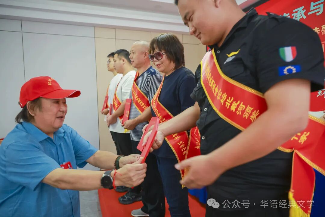 颁奖典礼现场气氛欢快而热烈,嘉宾云集。在优美的颁奖典礼音乐声中,荣获一二三等奖的作者走向领奖台,与会领导专家一一为他们颁发了奖牌和证书,与会领导专家先后致辞,祝贺大会召开,祝贺各位获奖作家,对他们的创作成就给予了高度肯定。获奖作家代表、灌南文学责编、江苏省百名优秀退役军人服务站站长高平海发表感言,他在发言中分享了自己的创作心得与体会,表达了对大赛的感谢以及对文学创作的热爱与执着:首先,请允许我向大会组委会致以最诚挚的谢意。是你们以远见卓识搭建起这座横跨古今的文学“山海之桥”,让我们得以在个体经验与集体记忆的交汇处促膝对话,在传统文脉与时代浪潮的激荡中探寻创作的突围之路。也感谢每一位评委老师的精准目光,这份肯定如灯塔穿透迷雾,让我们更加确信:文学的星光,永远为真诚的书写者亮着;时代的沃土,永远为扎根生活的文字结出硕果。